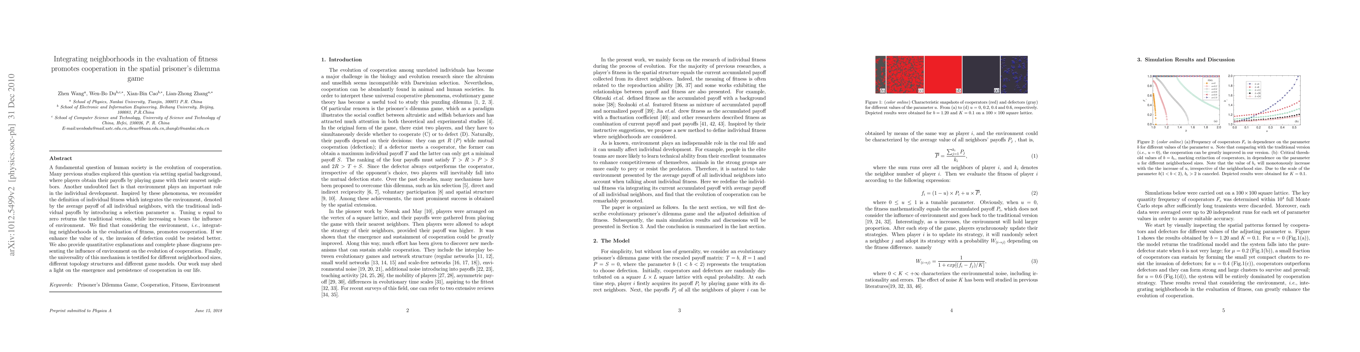 This paper explores how integrating neighborhood environments into the evaluation of individual fitness enhances cooperation in spatial prisoner's dilemma games. By adjusting a parameter $u$ that weighs neighborhood influence, the study finds that higher values of $u$ better resist the spread of defection, suggesting that environmental context plays a crucial role in fostering cooperation.