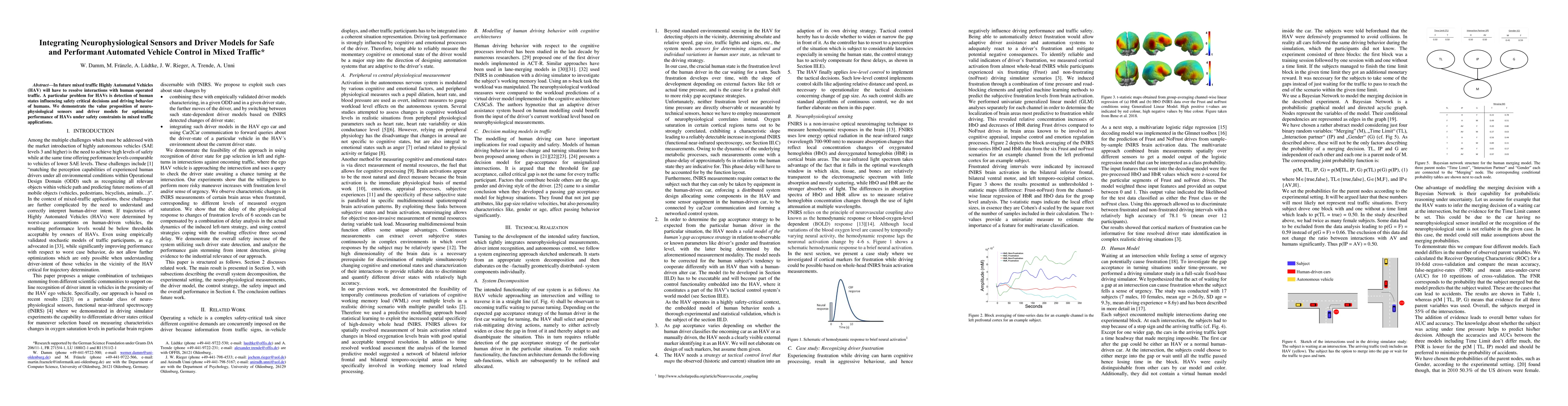 In future mixed traffic Highly Automated Vehicles (HAV) will have to resolve interactions with human operated traffic. A particular problem for HAVs is detection of human states influencing safety critical decisions and driving behavior of humans. We demonstrate the value proposition of neurophysiological sensors and driver models for optimizing performance of HAVs under safety constraints in mixed traffic applications.