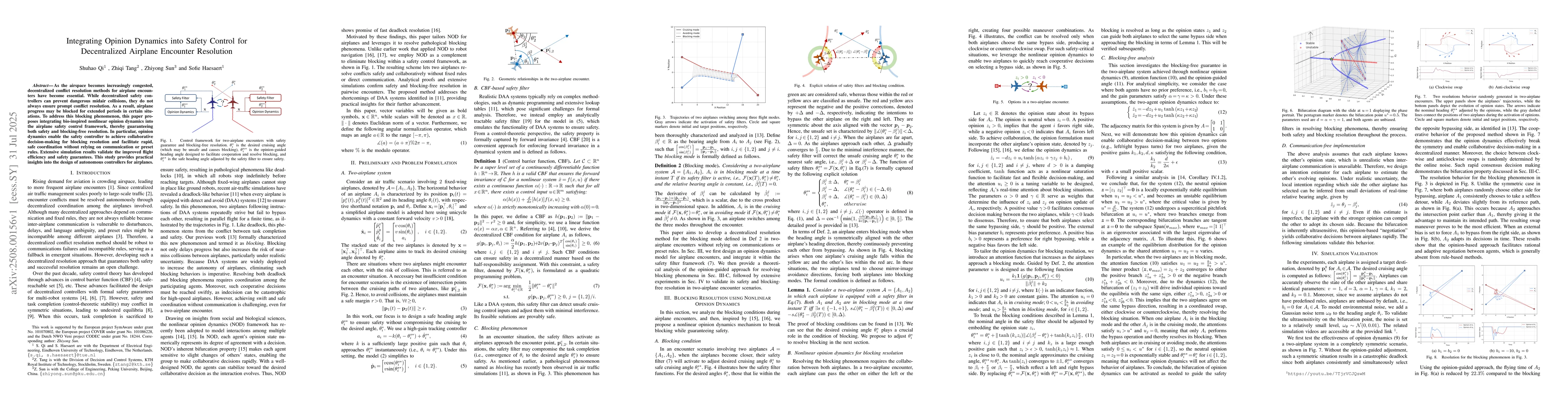 As the airspace becomes increasingly congested, decentralized conflict resolution methods for airplane encounters have become essential. While decentralized safety controllers can prevent dangerous midair collisions, they do not always ensure prompt conflict resolution. As a result, airplane progress may be blocked for extended periods in certain situations. To address this blocking phenomenon, this paper proposes integrating bio-inspired nonlinear opinion dynamics into the airplane safety control framework, thereby guaranteeing both safety and blocking-free resolution. In particular, opinion dynamics enable the safety controller to achieve collaborative decision-making for blocking resolution and facilitate rapid, safe coordination without relying on communication or preset rules. Extensive simulation results validate the improved flight efficiency and safety guarantees. This study provides practical insights into the design of autonomous controllers for airplanes.