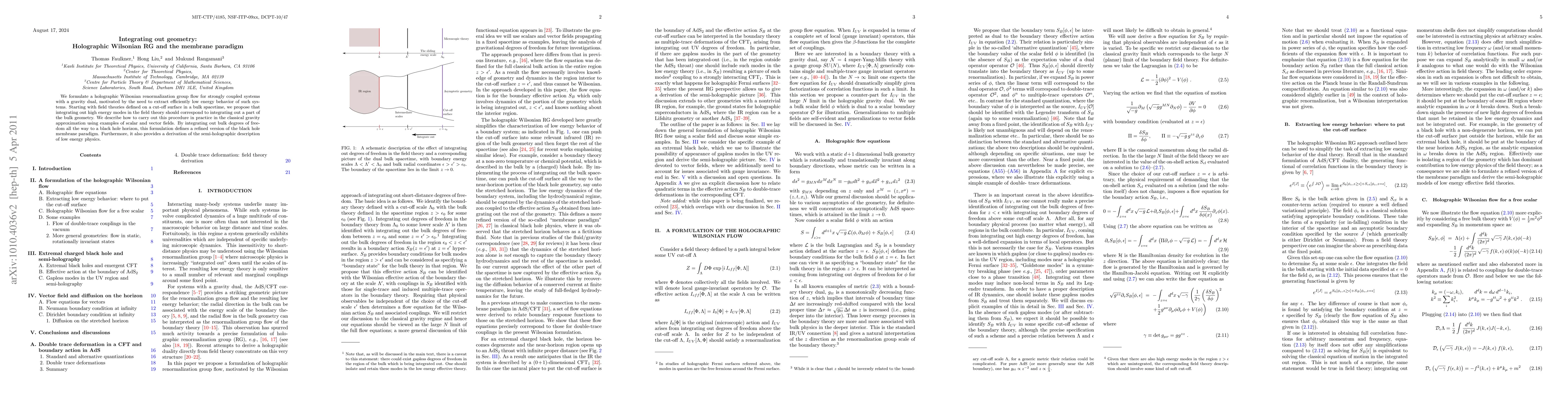 The paper introduces a holographic Wilsonian renormalization group flow formalism, providing a method to integrate out high energy modes in strongly coupled systems with a gravity dual by correspondingly integrating out parts of the bulk geometry.