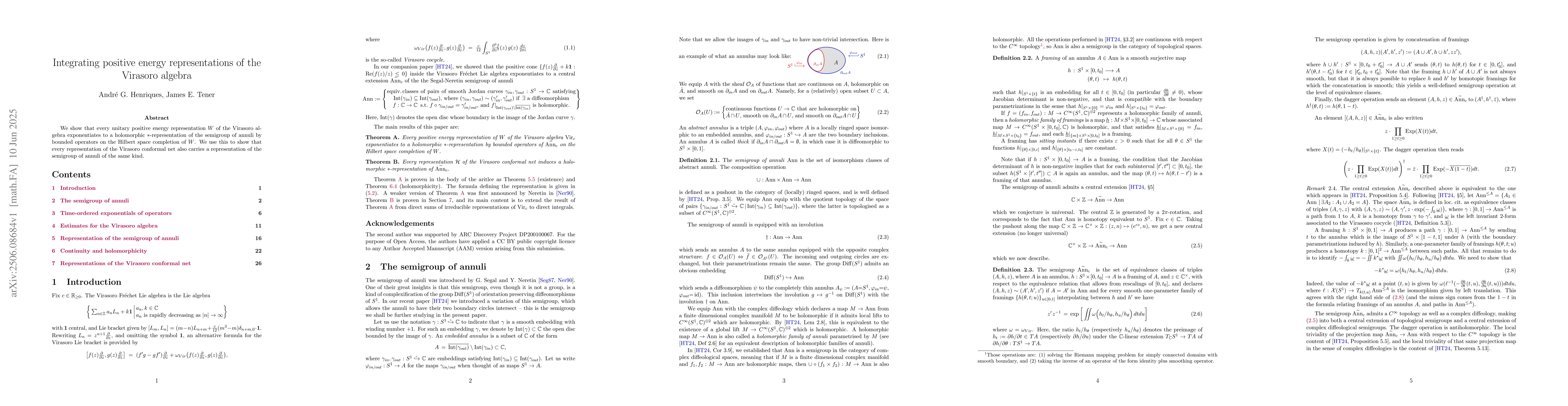 Researchers show that every unitary positive energy representation of the Virasoro algebra can be transformed into a holomorphic *-representation of the semigroup of annuli, leading to a new understanding of conformal nets.