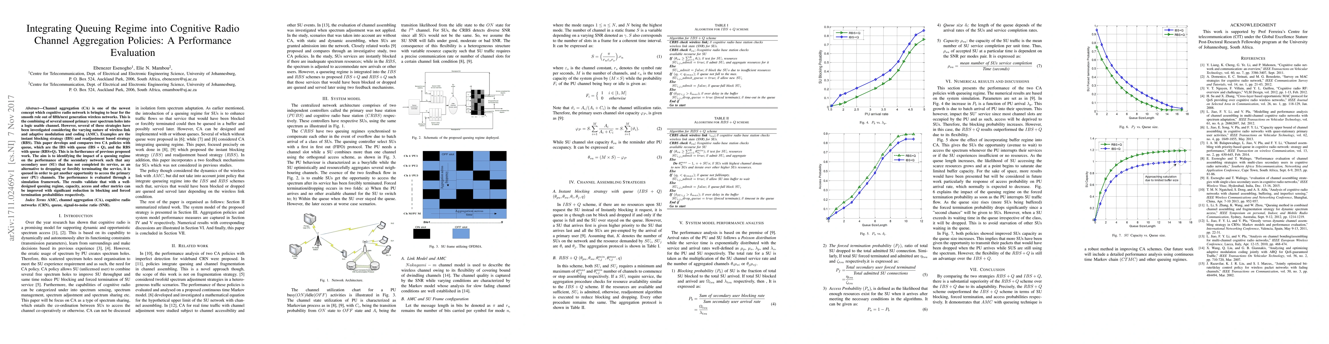 This paper evaluates two cognitive radio channel aggregation policies—IBS with queue (IBS+Q) and RBS with queue (RBS+Q)—to assess the impact of queuing on secondary network performance. Simulation results show that incorporating a queuing regime significantly improves capacity and reduces blocking and forced termination probabilities.