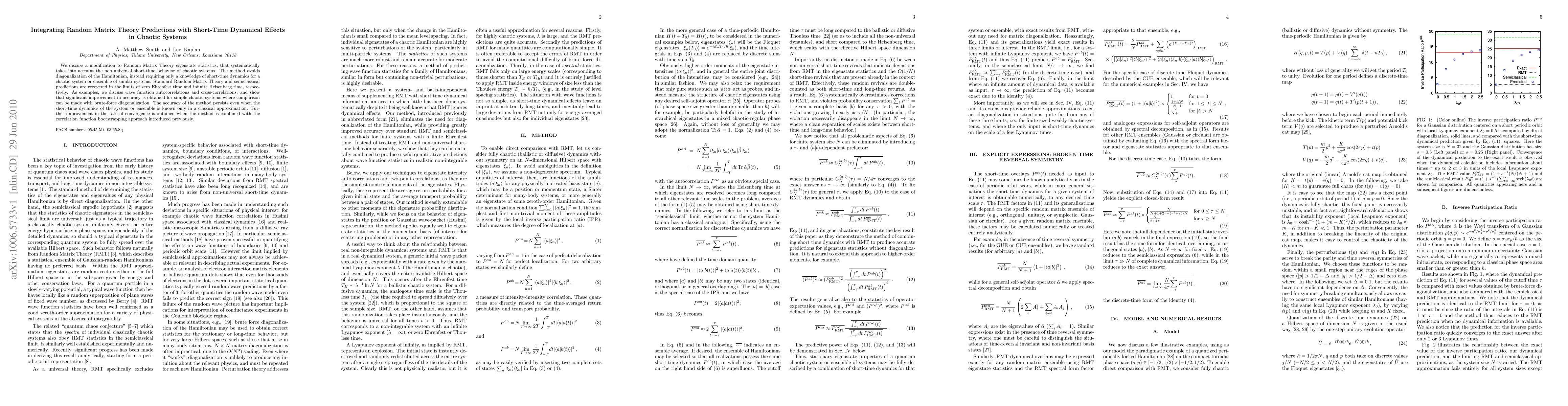 This paper proposes a modified Random Matrix Theory that incorporates short-time dynamical effects in chaotic systems, improving accuracy without requiring Hamiltonian diagonalization. The method is shown to enhance predictions for wave function autocorrelations and cross-correlations, especially in simple chaotic systems.