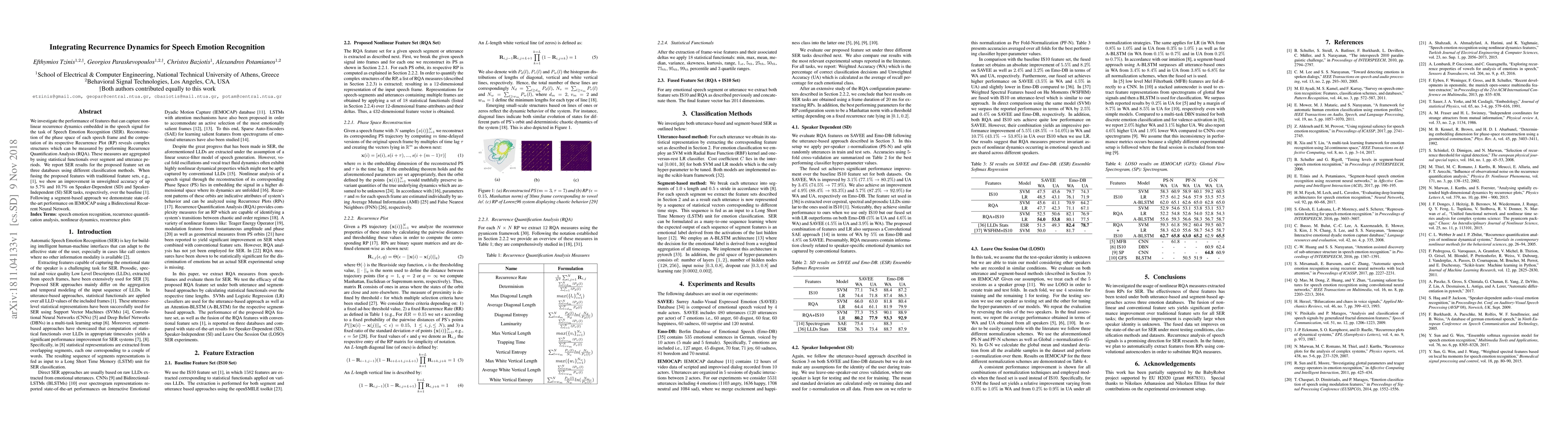 This paper explores the use of nonlinear recurrence dynamics in speech signals for Speech Emotion Recognition (SER), showing that Recurrence Quantification Analysis features improve SER accuracy by up to 10.7% over baseline methods, especially when combined with traditional features. The study achieves state-of-the-art results on the IEMOCAP dataset using a Bidirectional Recurrent Neural Network.