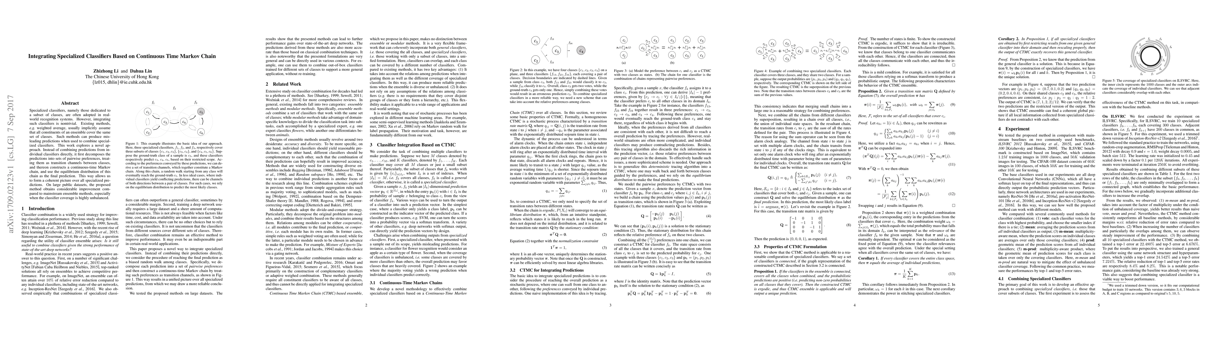 This research proposes a new method to integrate specialized classifiers into recognition systems by constructing a continuous-time Markov chain from pairwise preferences between classes, achieving significant improvement on large public datasets with unbalanced classifier coverage.