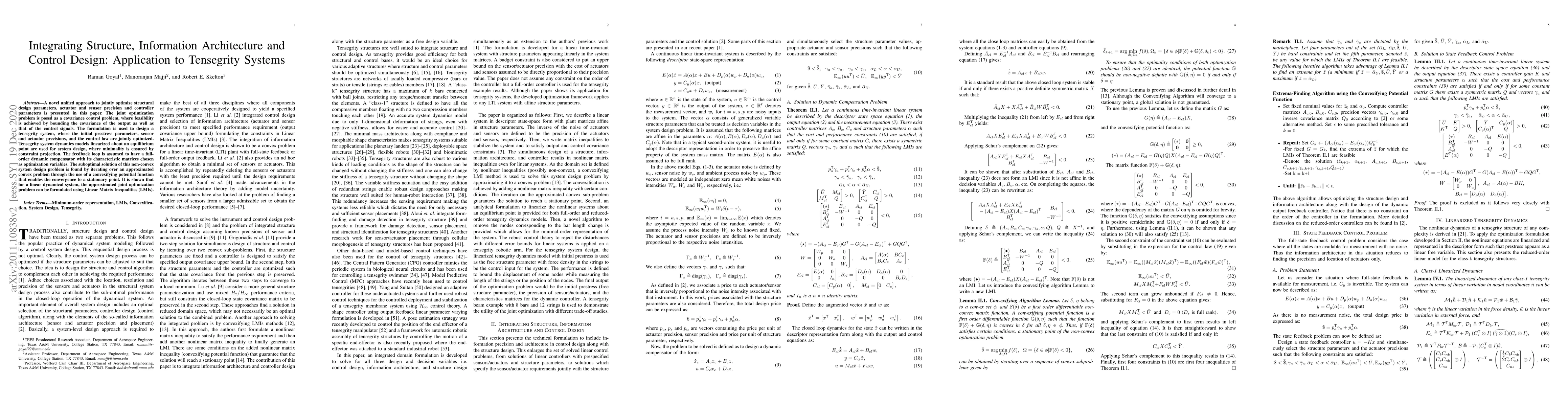 Researchers developed a unified approach to optimize tensegrity system design, including structure, information architecture, and control parameters, using covariance control problems and linear matrix inequalities.