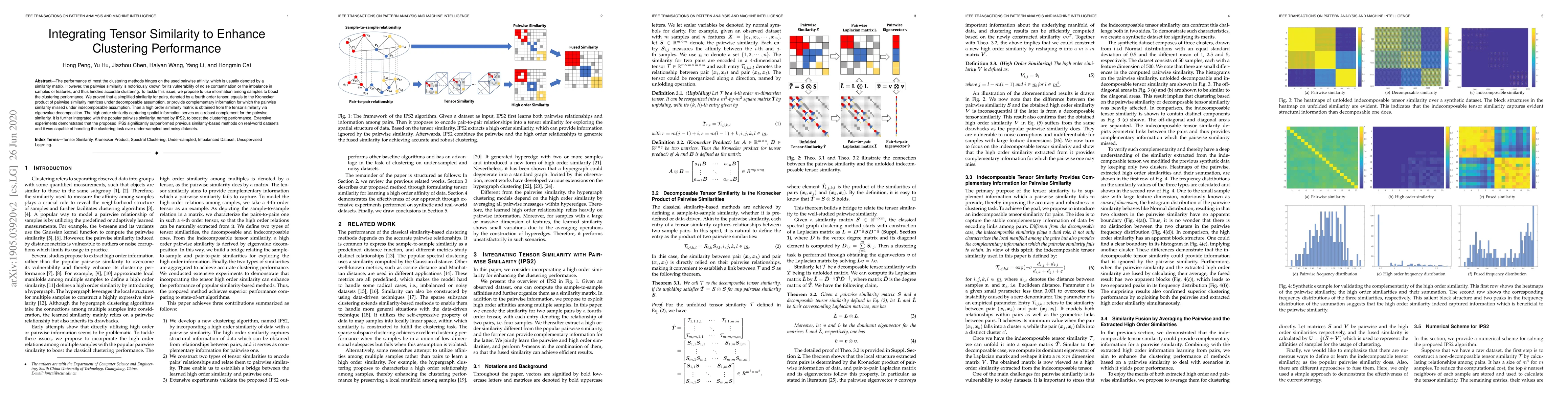 The research introduces IPS2, a clustering method that enhances performance by integrating tensor similarity with pairwise similarity. Tensor similarity captures spatial information, acting as a robust complement to pairwise similarity, which is often contaminated by noise or sample/feature imbalance. Experiments show IPS2 significantly outperforms previous methods, especially for under-sampled and noisy datasets.