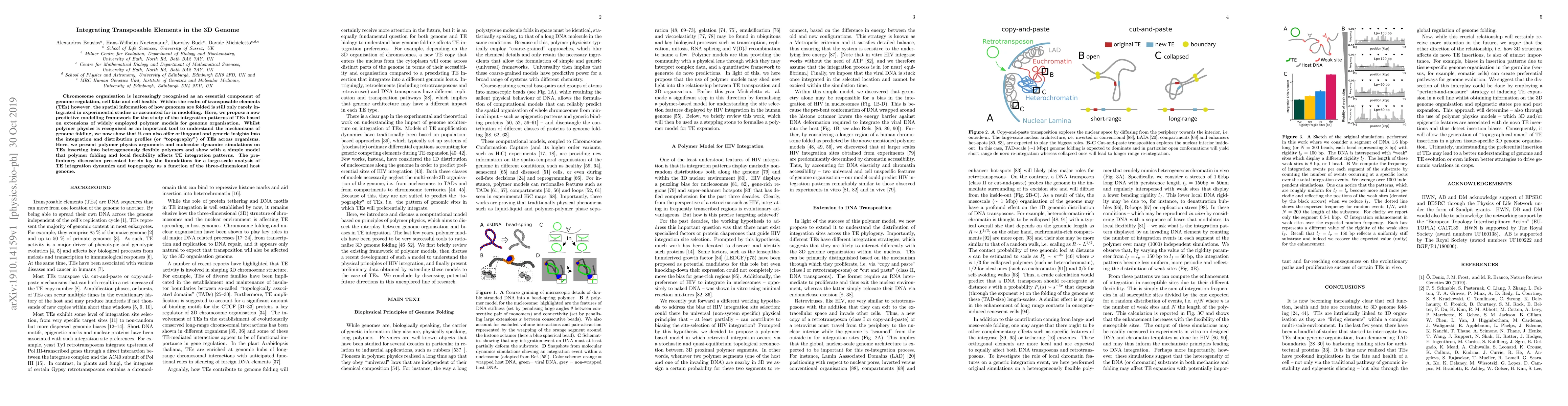 The research proposes a new predictive modelling framework for studying transposable elements (TEs) integration patterns using extensions of widely employed polymer models for genome organization, supported by molecular dynamics simulations.