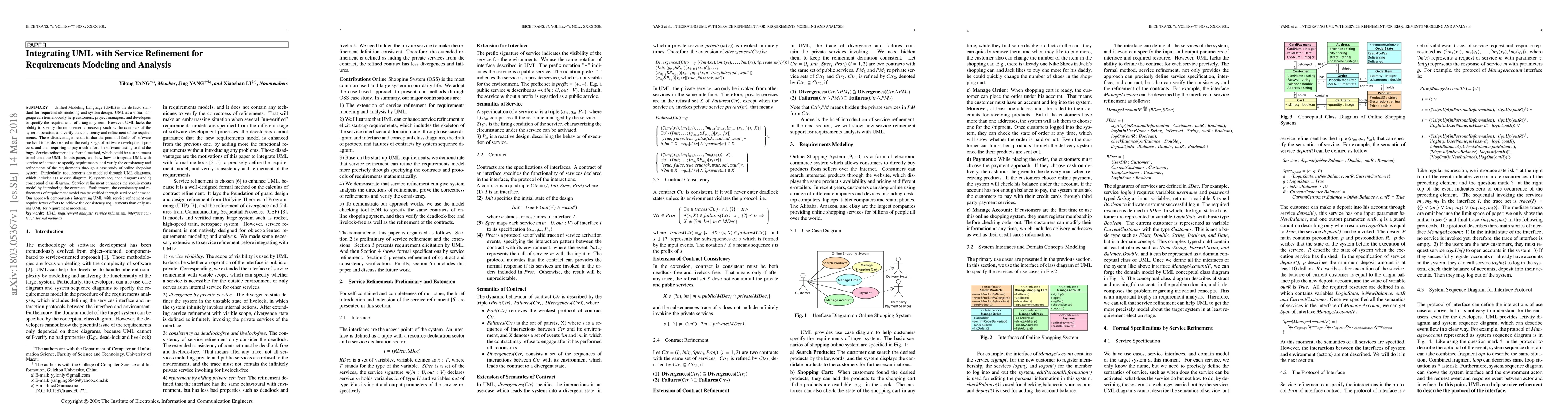 This paper proposes integrating Unified Modeling Language (UML) with service refinement to enhance precise specification and verification of requirements, illustrated through an online shopping system case study, demonstrating reduced effort in ensuring consistency compared to using UML alone.
