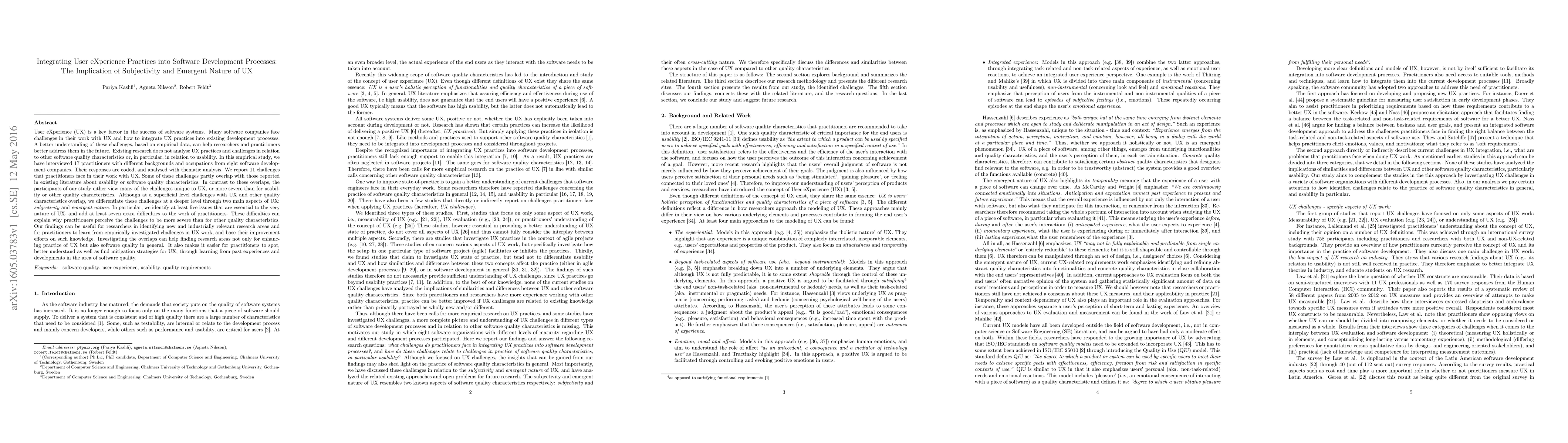 Many software companies face challenges in their work with User eXperience (UX) and how to integrate UX practices into existing development processes. A better understanding of these challenges can help researchers and practitioners better address them. Existing research does not analyse UX challenges in relation to other software quality characteristics including usability. In this empirical study, we have interviewed 17 practitioners from eight software development companies. Their responses are coded and analysed with thematic analysis. We report 11 challenges that practitioners face in their work with UX. Some of these challenges partly overlap with those reported in existing literature about usability or software quality characteristics. In contrast to these overlaps, the participants of our study either view many of the challenges unique to UX, or more severe than for usability or other quality characteristics. Although at a superficial level challenges with UX and other quality characteristics overlap, we differentiate these challenges at a deeper level through two main aspects of UX: subjectivity and emergent nature. In particular, we identify at least five issues that are essential to the very nature of UX, and add at least seven extra difficulties to the work of practitioners. These difficulties can explain why practitioners perceive the challenges to be more severe than for other quality characteristics. Our findings can be useful for researchers in identifying industrially relevant research areas and for practitioners to learn from empirically investigated challenges and base their improvement efforts on such knowledge. Investigating the overlaps can help finding research areas not only for enhancing practice of UX but also software quality in general. It also makes it easier for practitioners to spot, better understand as well as find mitigation strategies for UX challenges.