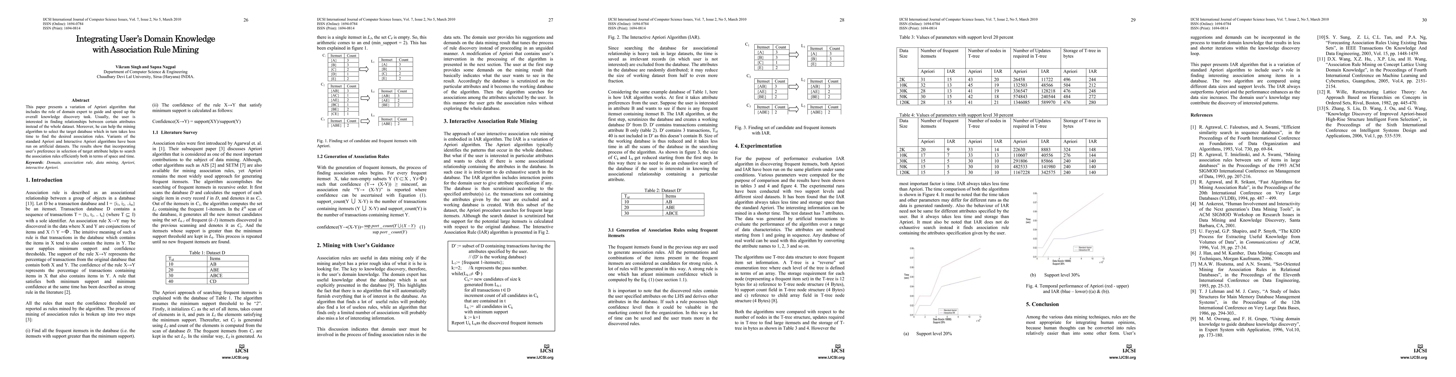 This paper proposes a modified Apriori algorithm that incorporates domain expert input to expedite knowledge discovery, focusing on specific relationships rather than the entire dataset. Results from artificial datasets demonstrate that user preferences in attribute selection significantly enhance efficiency in both time and space for association rule mining.