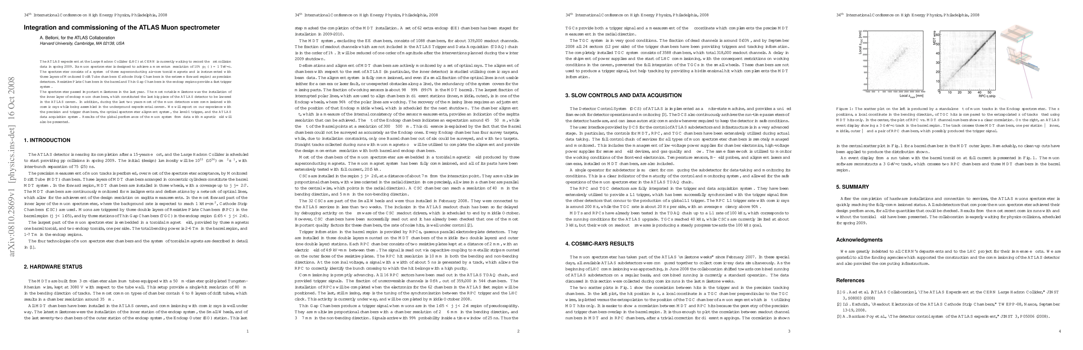 The ATLAS Muon spectrometer, part of the LHC's ATLAS experiment, has reached significant milestones including the installation of the final endcap muon chamber and extensive commissioning with cosmic rays. The system integrates precision Monitored Drift Tube chambers and a fast trigger system, with results on its global performance presented.