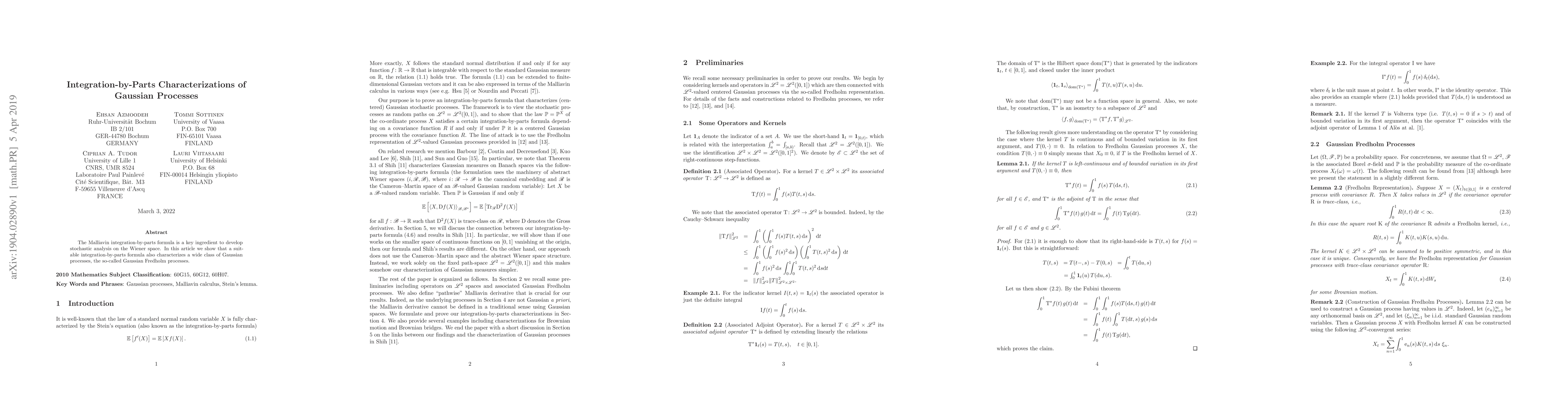 Summary: This paper demonstrates that a Malliavin integration-by-parts formula characterizes Gaussian Fredholm processes, extending the utility of stochastic analysis techniques to a broader class of Gaussian processes.