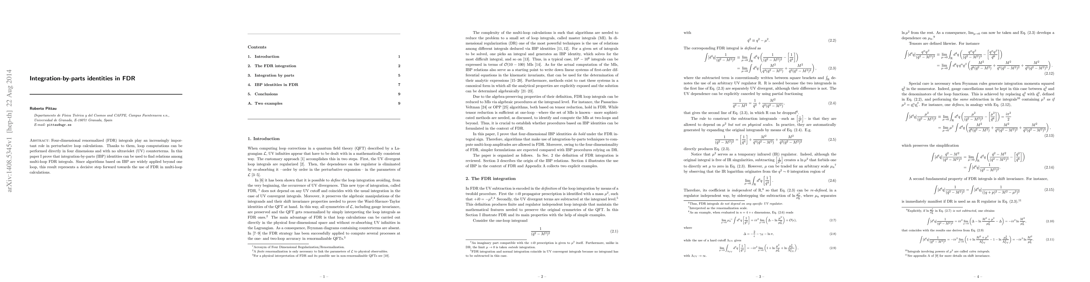 This paper demonstrates that integration-by-parts (IBP) identities can establish relationships among multi-loop four-dimensional renormalized (FDR) integrals, advancing the application of FDR in perturbative loop calculations without the need for ultraviolet counterterms. This result is a significant step forward for algorithms based on IBP in multi-loop computations.