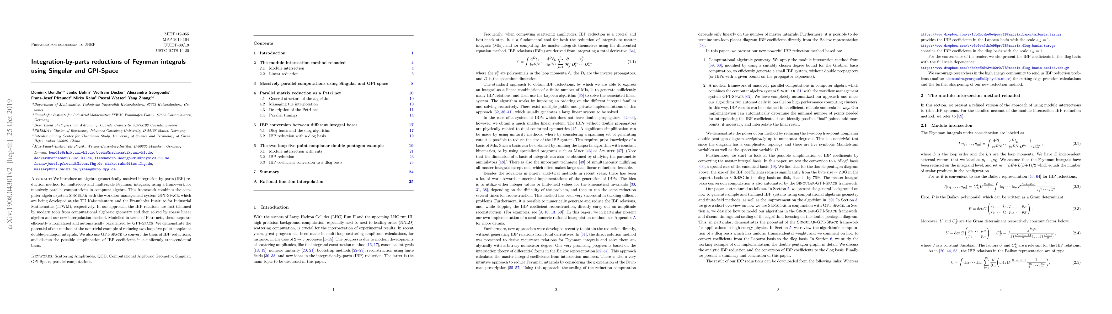 This paper presents an algebro-geometrically motivated integration-by-parts reduction method for complex Feynman integrals, combining Singular and GPI-Space for parallel computation. The method automates and parallelizes the reduction process using algebraic geometry and sparse linear algebra, demonstrated through the reduction of two-loop five-point nonplanar double-pentagon integrals.