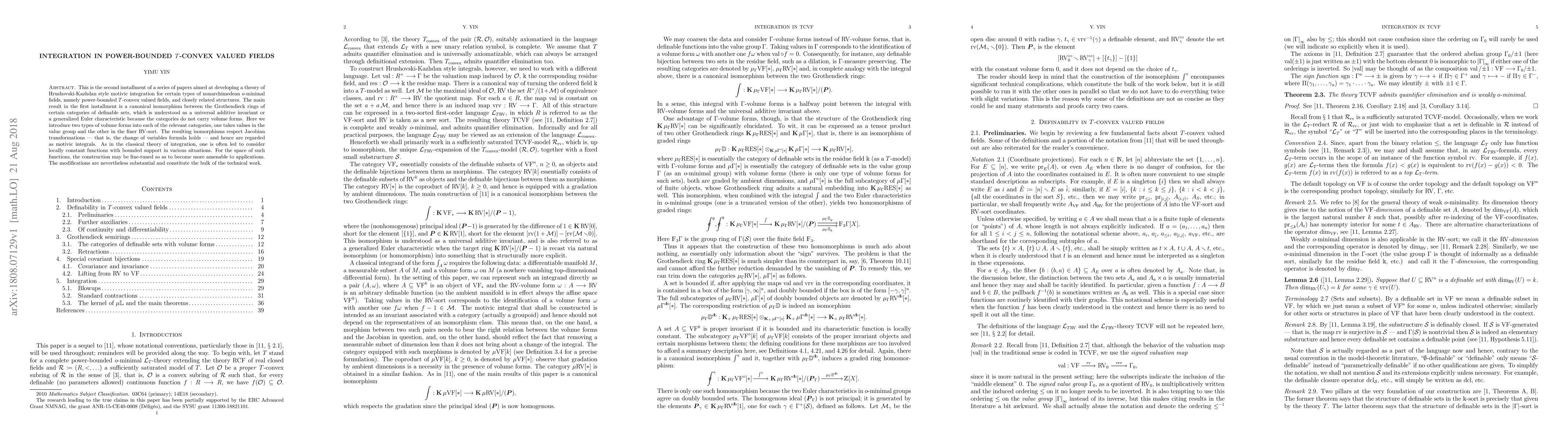 This paper develops a theory of motivic integration for power-bounded $T$-convex valued fields by introducing volume forms and constructing motivic integrals that respect Jacobian transformations. The modifications made to locally constant functions with bounded support are substantial and crucial for future applications.