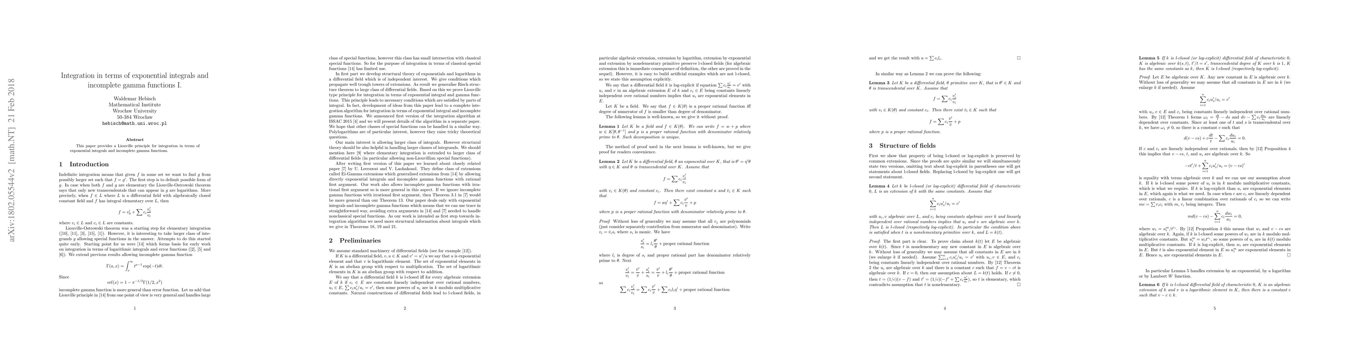 Summary: This paper presents a Liouville principle for evaluating integrals expressed in terms of exponential integrals and incomplete gamma functions, providing a foundational framework for their analysis.