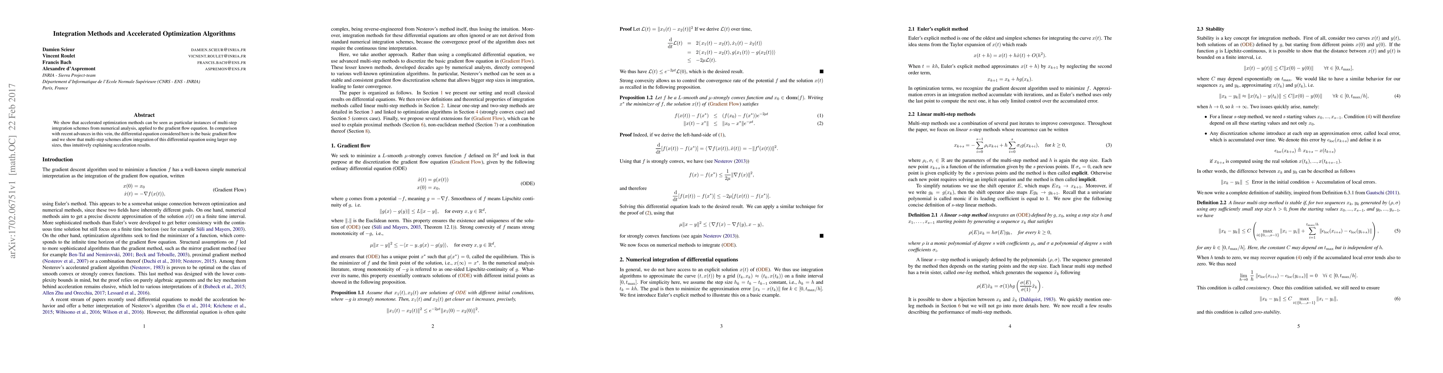 Researchers show that accelerated optimization methods can be seen as multi-step integration schemes applied to gradient flow equations, allowing for larger step sizes and intuitive acceleration results.