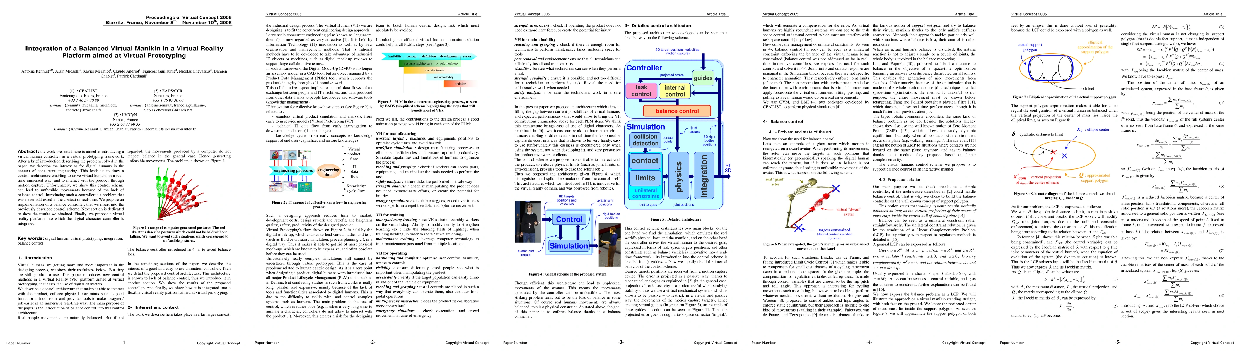 This paper introduces a virtual human controller within a virtual prototyping framework, addressing the lack of balance control in real-time motion capture. It proposes an integrated balance controller to enhance the realism and feasibility of virtual human interactions in a virtual reality platform.