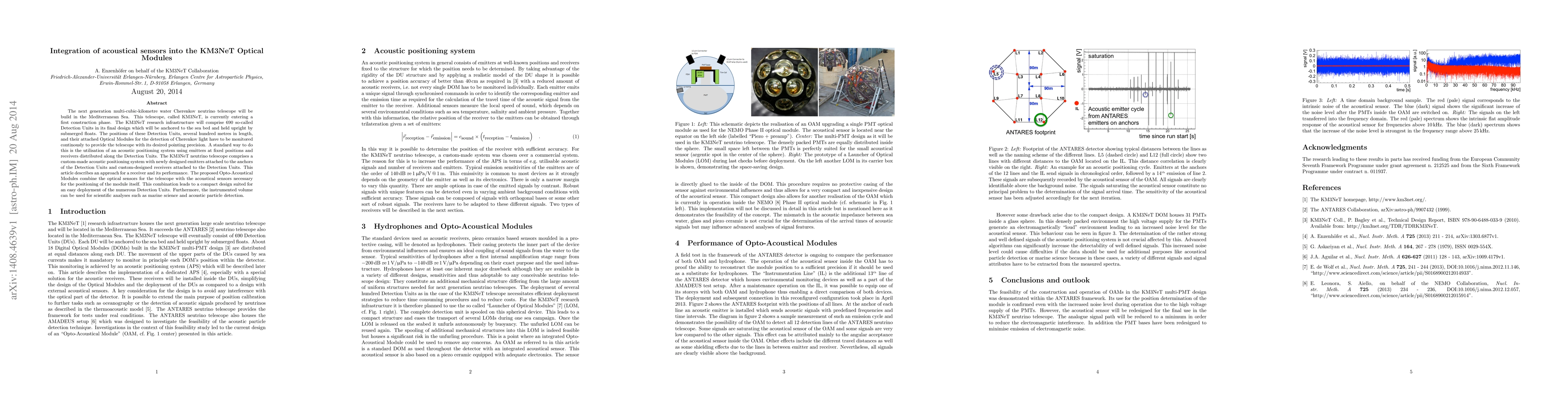 This paper discusses the integration of acoustical sensors into the KM3NeT Optical Modules for the next-generation multi-cubic-kilometre water Cherenkov neutrino telescope, aiming to enhance the positioning precision of Detection Units through a custom-made acoustic system. The proposed Opto-Acoustical Modules combine optical and acoustic sensors for compact, deployable, and multifunctional use.