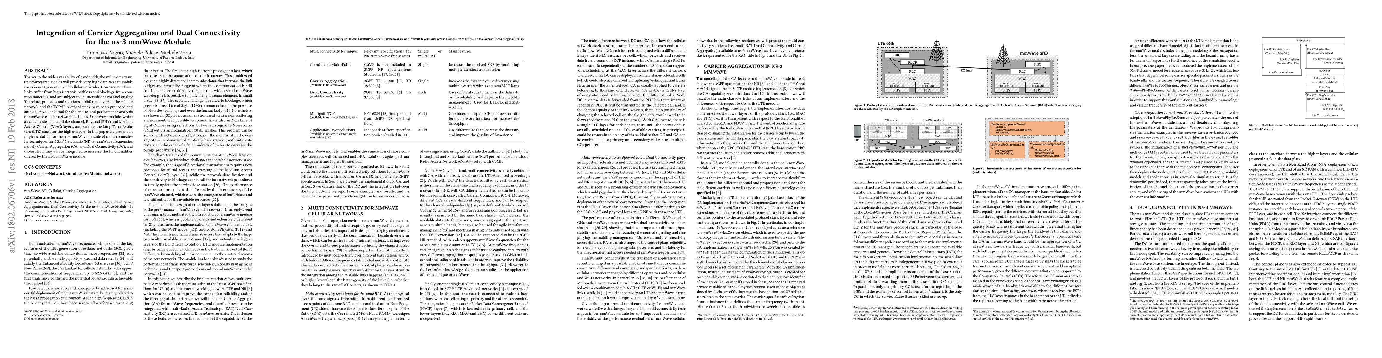Thanks to the wide availability of bandwidth, the millimeter wave (mmWave) frequencies will provide very high data rates to mobile users in next generation 5G cellular networks. However, mmWave links suffer from high isotropic pathloss and blockage from common materials, and are subject to an intermittent channel quality. Therefore, protocols and solutions at different layers in the cellular network and the TCP/IP protocol stack have been proposed and studied. A valuable tool for the end-to-end performance analysis of mmWave cellular networks is the ns-3 mmWave module, which already models in detail the channel, Physical (PHY) and Medium Access Control (MAC) layers, and extends the Long Term Evolution (LTE) stack for the higher layers. In this paper we present an implementation for the ns-3 mmWave module of multi connectivity techniques for 3GPP New Radio (NR) at mmWave frequencies, namely Carrier Aggregation (CA) and Dual Connectivity (DC), and discuss how they can be integrated to increase the functionalities offered by the ns-3 mmWave module.
