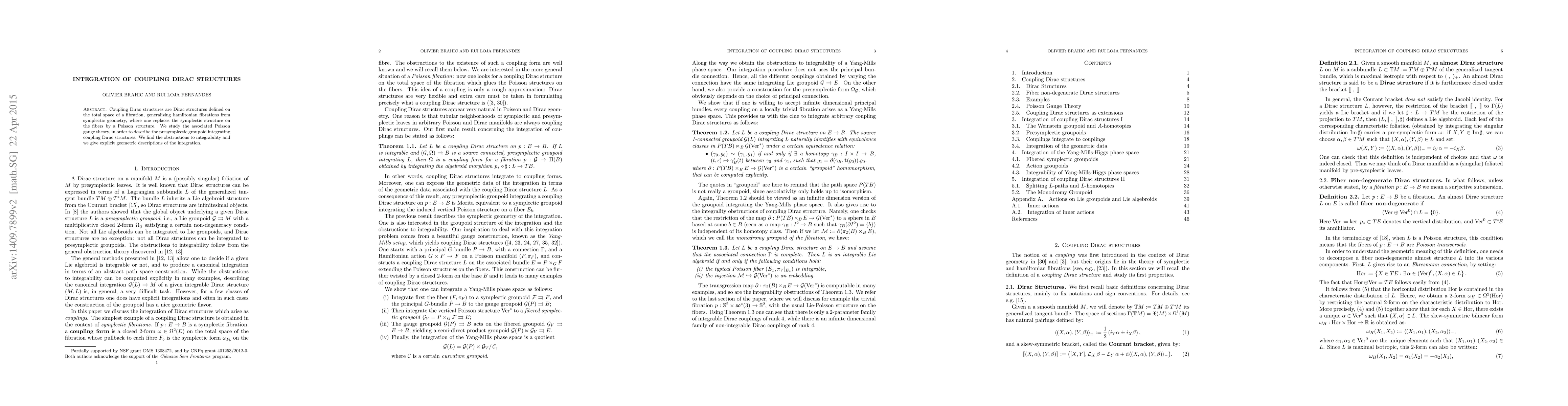 This paper explores the integration of coupling Dirac structures, which generalize Hamiltonian fibrations by replacing symplectic structures with Poisson structures. It investigates the associated Poisson gauge theory to describe the presymplectic groupoid integrating these structures and identifies the obstructions to integrability, providing explicit geometric descriptions of the integration process.