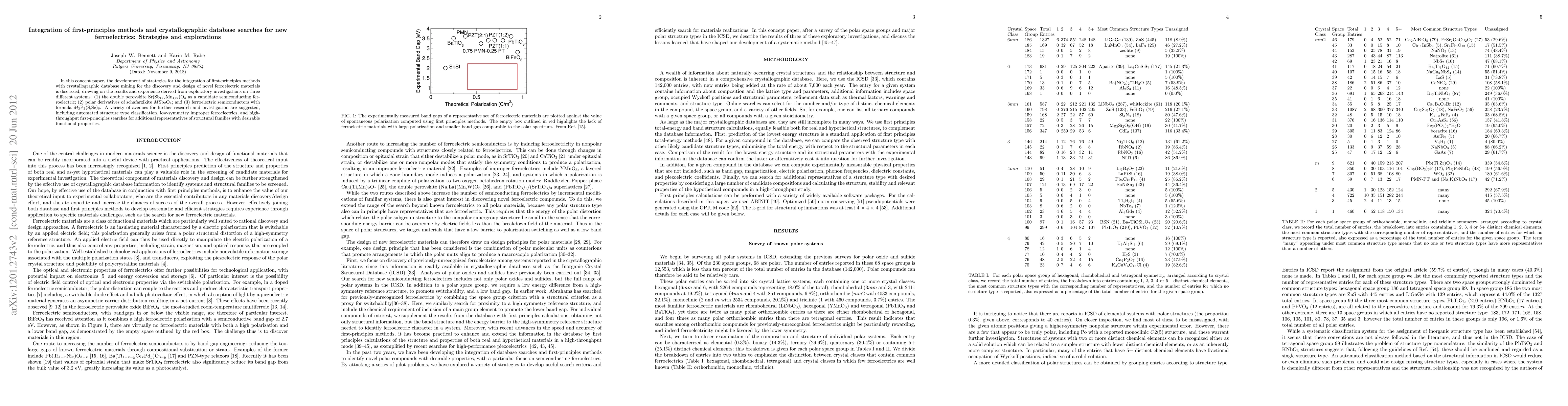 This paper outlines strategies for integrating first-principles computational methods with crystallographic database searches to discover novel ferroelectric materials. It explores three systems, suggesting avenues for further research, including automated classification and high-throughput searches for functional properties.