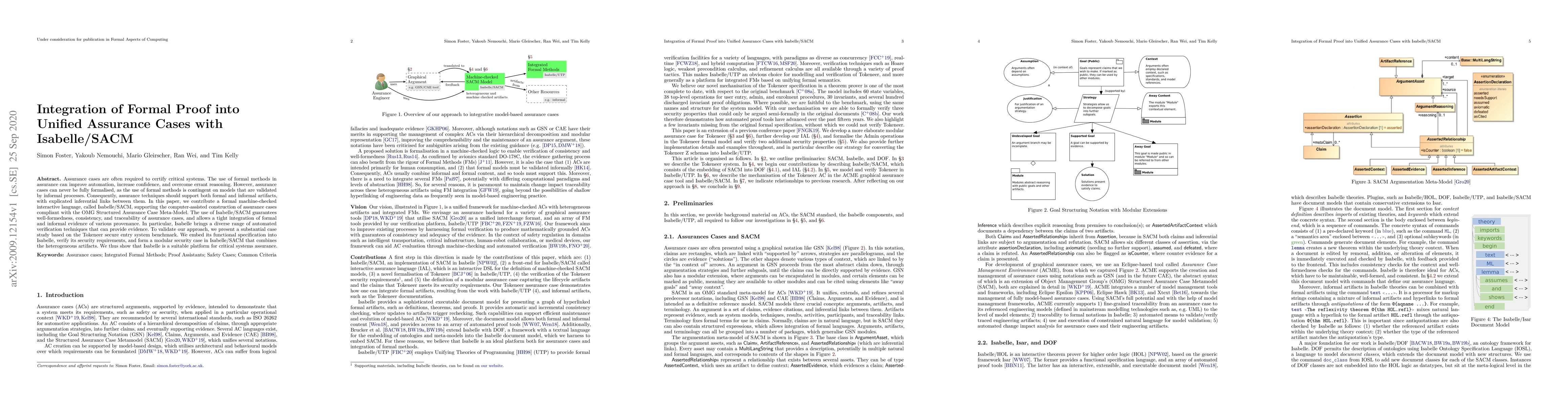 Assurance cases are often required to certify critical systems. The use of formal methods in assurance can improve automation, increase confidence, and overcome errant reasoning. However, assurance cases can never be fully formalised, as the use of formal methods is contingent on models that are validated by informal processes. Consequently, assurance techniques should support both formal and informal artifacts, with explicated inferential links between them. In this paper, we contribute a formal machine-checked interactive language, called Isabelle/SACM, supporting the computer-assisted construction of assurance cases compliant with the OMG Structured Assurance Case Meta-Model. The use of Isabelle/SACM guarantees well-formedness, consistency, and traceability of assurance cases, and allows a tight integration of formal and informal evidence of various provenance. In particular, Isabelle brings a diverse range of automated verification techniques that can provide evidence. To validate our approach, we present a substantial case study based on the Tokeneer secure entry system benchmark. We embed its functional specification into Isabelle, verify its security requirements, and form a modular security case in Isabelle/SACM that combines the heterogeneous artifacts. We thus show that Isabelle is a suitable platform for critical systems assurance.