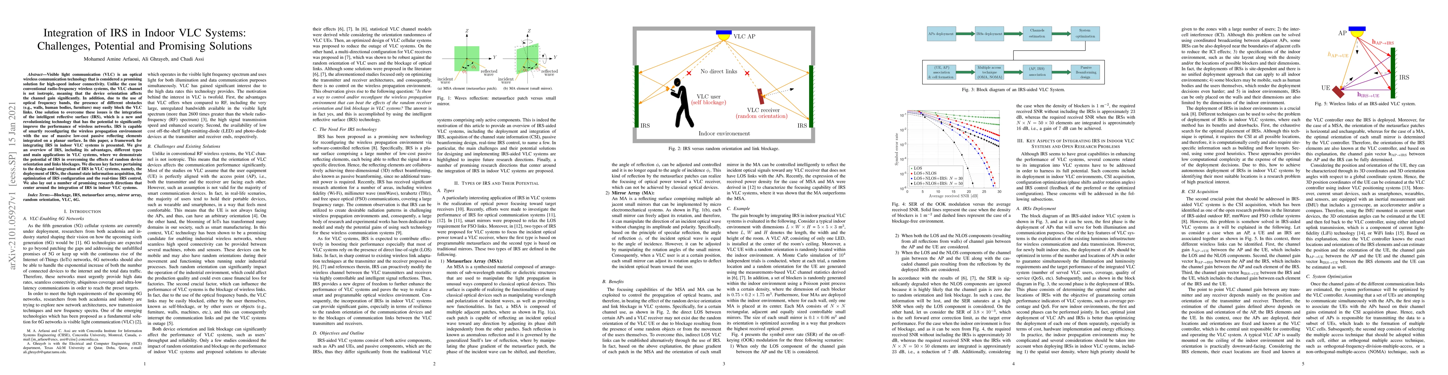 Visible light communication (VLC) is an optical wireless communication technology that is considered a promising solution for high-speed indoor connectivity. Unlike the case in conventional radio-frequency wireless systems, the VLC channel is not isotropic, meaning that the device orientation affects the channel gain significantly. In addition, due to the use of optical frequency bands, the presence of different obstacles (e.g., walls, human bodies, furniture) may easily block the VLC links. One solution to overcome these issues is the integration of the intelligent reflective surface (IRS), which is a new and revolutionizing technology that has the potential to significantly improve the performance of wireless networks. IRS is capable of smartly reconfiguring the wireless propagation environment with the use of massive low-cost passive reflecting elements integrated on a planar surface. In this paper, a framework for integrating IRS in indoor VLC systems is presented. We give an overview of IRS, including its advantages, different types and main applications in VLC systems, where we demonstrate the potential of IRS in overcoming the effects of random device orientation and links blockages. We discuss key factors pertaining to the design and integration of IRS in VLC systems, namely, the deployment of IRSs, the channel state information acquisition, the optimization of IRS configuration and the real-time IRS control. We also lay out a number of promising research directions that center around the integration of IRS in indoor VLC systems.