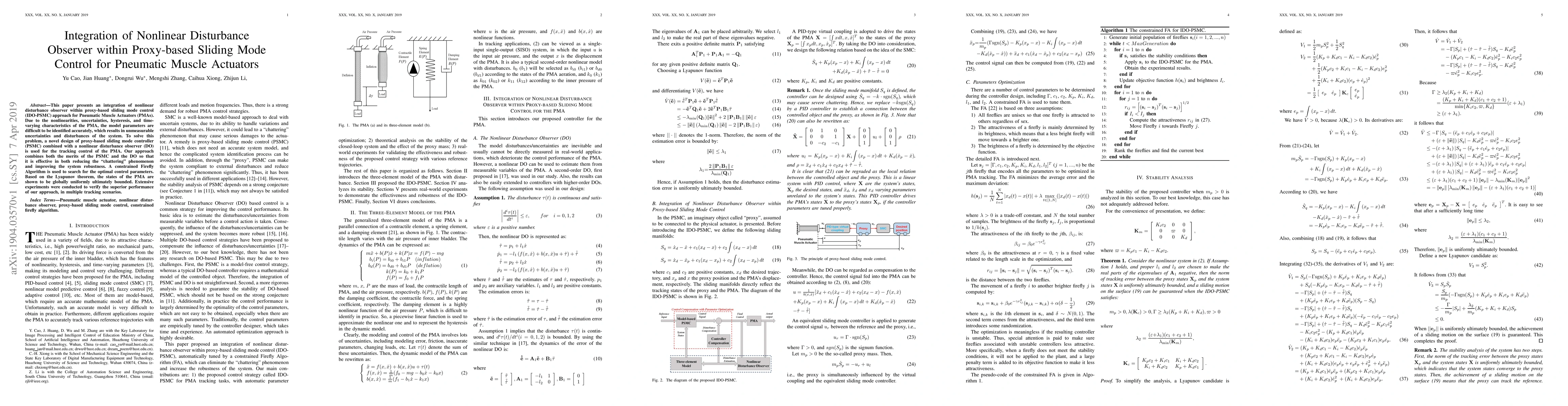 This paper presents an integration of nonlinear disturbance observer within proxy-based sliding mode control (IDO-PSMC) approach for Pneumatic Muscle Actuators (PMAs). Due to the nonlinearities, uncertainties, hysteresis, and time-varying characteristics of the PMA, the model parameters are difficult to be identified accurately, which results in unmeasurable uncertainties and disturbances of the system. To solve this problem, a novel design of proxy-based sliding mode controller (PSMC) combined with a nonlinear disturbance observer (DO) is used for the tracking control of the PMA. Our approach combines both the merits of the PSMC and the DO so that it is effective in both reducing the ``chattering" phenomenon and improving the system robustness. A constrained Firefly Algorithm is used to search for the optimal control parameters. Based on the Lyapunov theorem, the states of the PMA are shown to be globally uniformly ultimately bounded. Extensive experiments were conducted to verify the superior performance of our approach, in multiple tracking scenarios.