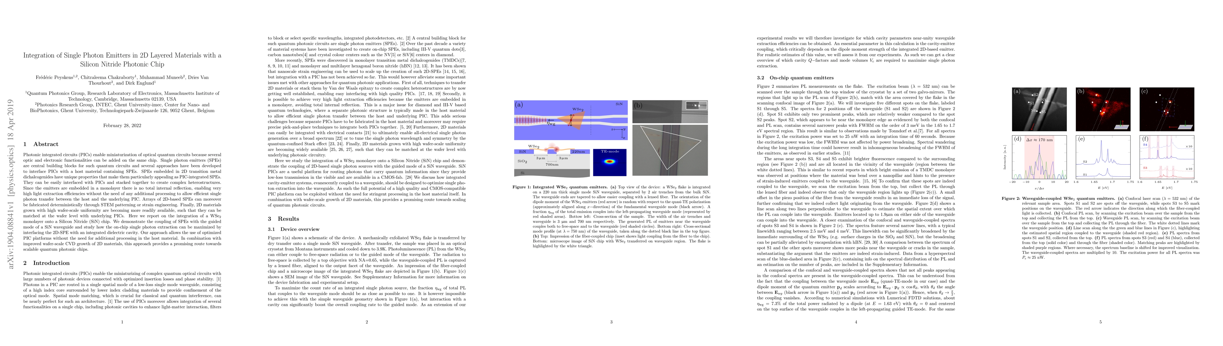 Photonic integrated circuits (PICs) enable miniaturization of optical quantum circuits because several optic and electronic functionalities can be added on the same chip. Single photon emitters (SPEs) are central building blocks for such quantum circuits and several approaches have been developed to interface PICs with a host material containing SPEs. SPEs embedded in 2D transition metal dichalcogenides have unique properties that make them particularly appealing as PIC-integrated SPEs. They can be easily interfaced with PICs and stacked together to create complex heterostructures. Since the emitters are embedded in a monolayer there is no total internal reflection, enabling very high light extraction efficiencies without the need of any additional processing to allow efficient single photon transfer between the host and the underlying PIC. Arrays of 2D-based SPEs can moreover be fabricated deterministically through STEM patterning or strain engineering. Finally, 2D materials grown with high wafer-scale uniformity are becoming more readily available, such that they can be matched at the wafer level with underlying PICs. Here we report on the integration of a WSe$_{2}$ monolayer onto a Silicon Nitride (SiN) chip. We demonstrate the coupling of SPEs with the guided mode of a SiN waveguide and study how the on-chip single photon extraction can be maximized by interfacing the 2D-SPE with an integrated dielectric cavity. Our approach allows the use of optimized PIC platforms without the need for additional processing in the host material. In combination with improved wafer-scale CVD growth of 2D materials, this approach provides a promising route towards scalable quantum photonic chips.