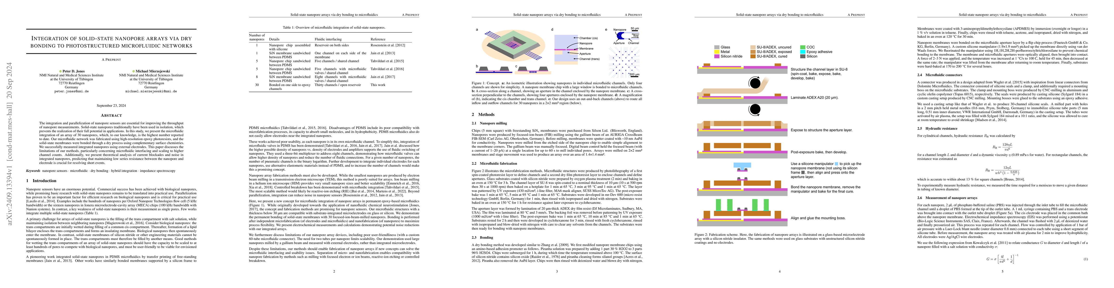 This study demonstrates the integration of a record 30 solid-state nanopores in a microfluidic network via a dry bonding process, showing successful measurement with external electrodes. The research also explores the challenges in scaling up and the importance of low series resistance for resolving short current blockades.