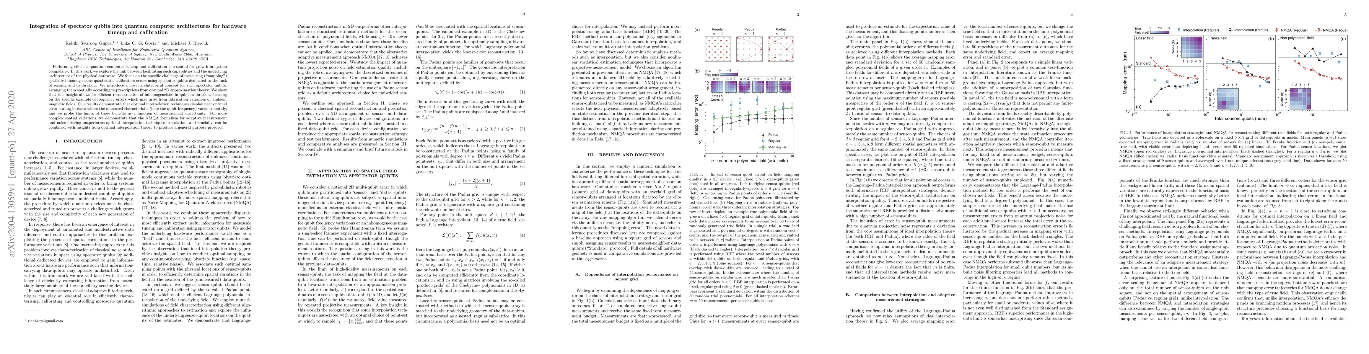 Performing efficient quantum computer tuneup and calibration is essential for growth in system complexity. In this work we explore the link between facilitating such capabilities and the underlying architecture of the physical hardware. We focus on the specific challenge of measuring (``mapping'') spatially inhomogeneous quasi-static calibration errors using spectator qubits dedicated to the task of sensing and calibration. We introduce a novel architectural concept for such spectator qubits: arranging them spatially according to prescriptions from optimal 2D approximation theory. We show that this insight allows for efficient reconstruction of inhomogeneities in qubit calibration, focusing on the specific example of frequency errors which may arise from fabrication variances or ambient magnetic fields. Our results demonstrate that optimal interpolation techniques display near optimal error-scaling in cases where the measured characteristic (here the qubit frequency) varies smoothly, and we probe the limits of these benefits as a function of measurement uncertainty. For more complex spatial variations, we demonstrate that the NMQA formalism for adaptive measurement and noise filtering outperforms optimal interpolation techniques in isolation, and crucially, can be combined with insights from optimal interpolation theory to produce a general purpose protocol.