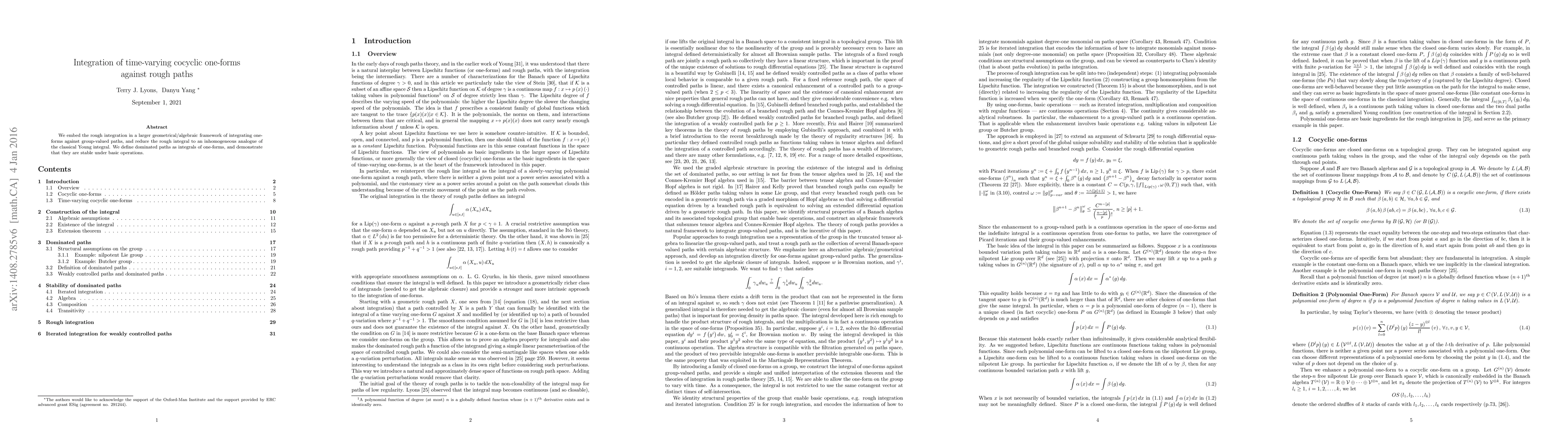 This paper integrates time-varying cocyclic one-forms against rough paths within a broader geometric framework, reducing the rough integral to a form akin to the classical Young integral. It introduces dominated paths as integrals of one-forms and proves their stability under fundamental operations.