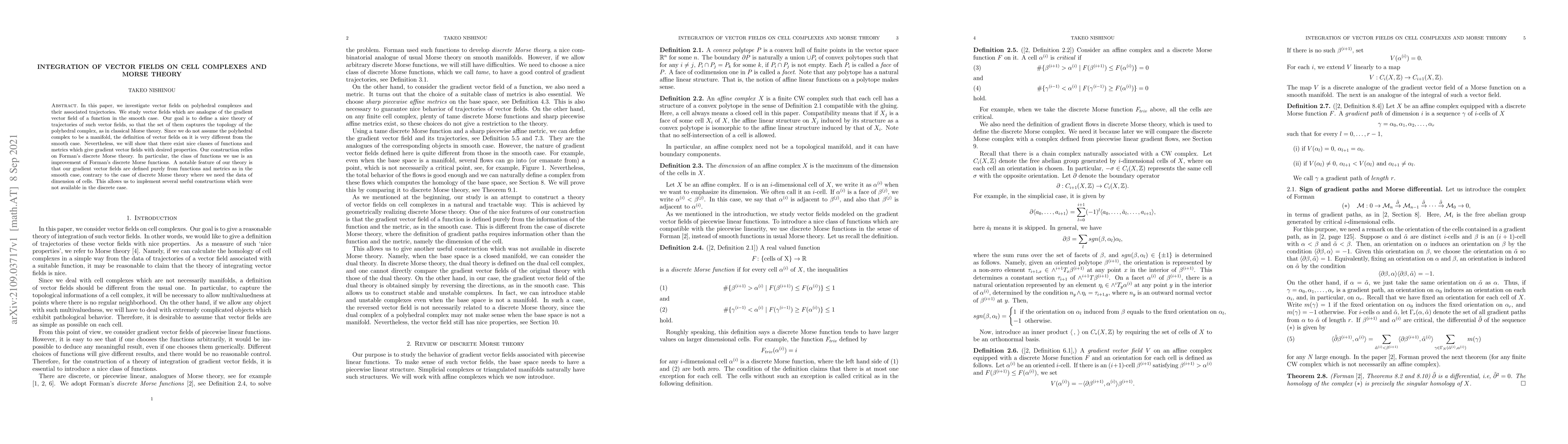 In this paper, we investigate vector fields on polyhedral complexes and their associated trajectories. We study vector fields which are analogue of the gradient vector field of a function in the smooth case. Our goal is to define a nice theory of trajectories of such vector fields, so that the set of them captures the topology of the polyhedral complex, as in classical Morse theory. Since we do not assume the polyhedral complex to be a manifold, the definition of vector fields on it is very different from the smooth case. Nevertheless, we will show that there exist nice classes of functions and metrics which give gradient vector fields with desired properties. Our construction relies on Forman's discrete Morse theory. In particular, the class of functions we use is an improvement of Forman's discrete Morse functions. A notable feature of our theory is that our gradient vector fields are defined purely from functions and metrics as in the smooth case, contrary to the case of discrete Morse theory where we need the data of dimension of cells. This allows us to implement several useful constructions which were not available in the discrete case.