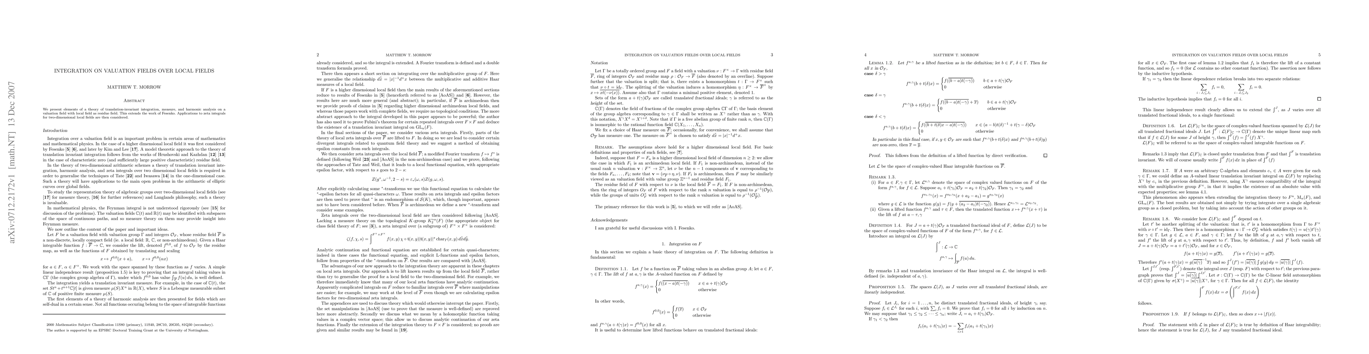 We present elements of a theory of translation-invariant integration, measure, and harmonic analysis on a valuation field with local field as residue field. This extends the work of Fesenko. Applications to zeta integrals for two-dimensional local fields are then considered.