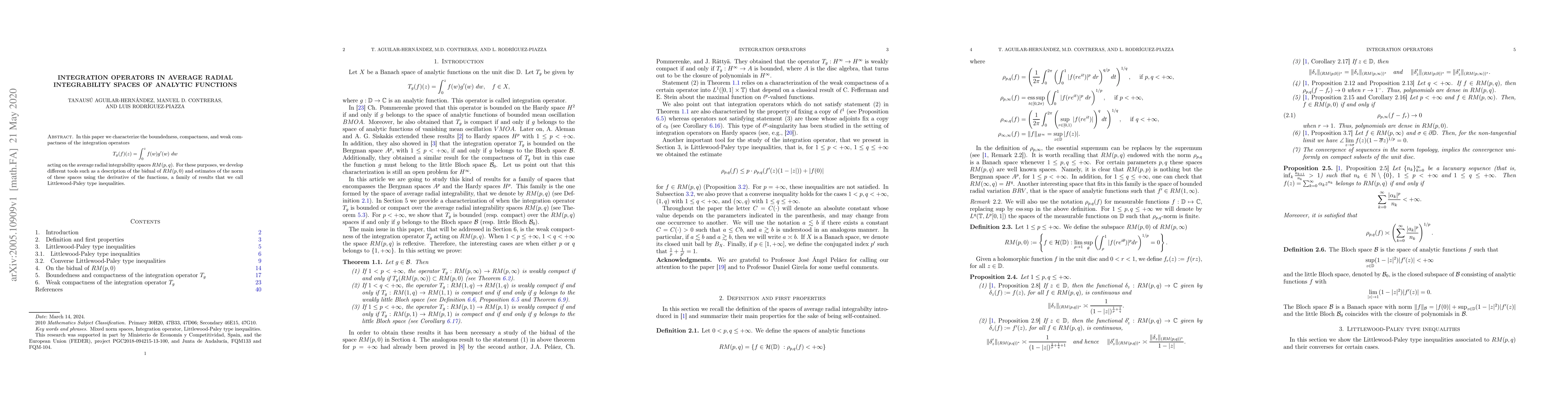 Summary: This paper investigates the boundedness, compactness, and weak compactness of integration operators acting on average radial integrability spaces of analytic functions, developing tools including bidual descriptions and Littlewood-Paley type inequalities.