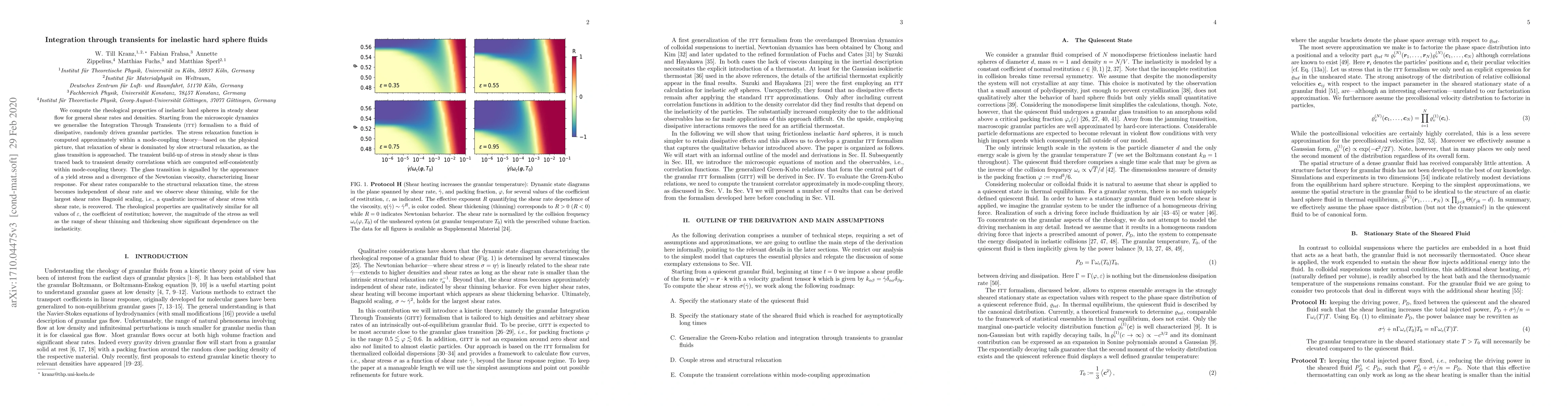 This paper investigates the rheological properties of inelastic hard sphere fluids under steady shear flow using the Integration Through Transients (ITT) formalism. It finds that the stress relaxation function is dominated by structural relaxation and shows a yield stress and viscosity divergence near the glass transition, with shear thinning and Bagnold scaling observed at different shear rates.