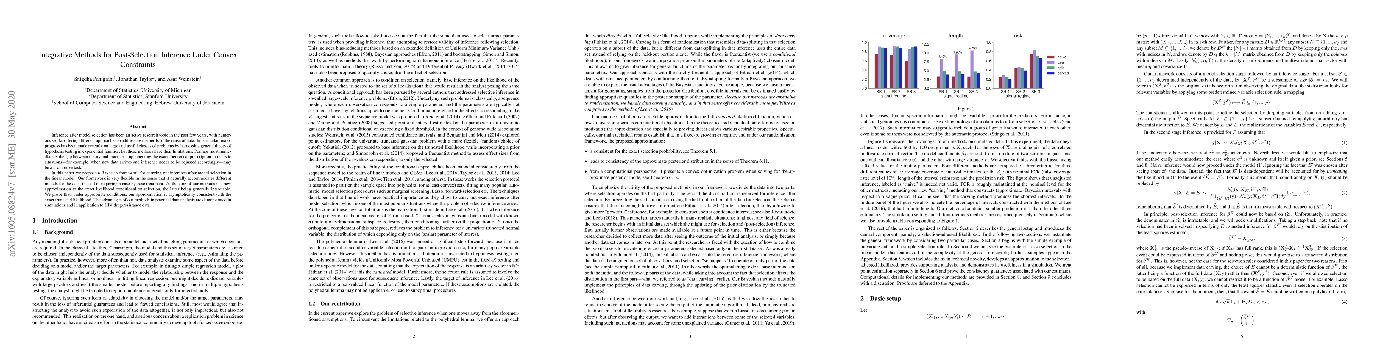Inference after model selection has been an active research topic in the past few years, with numerous works offering different approaches to addressing the perils of the reuse of data. In particular, major progress has been made recently on large and useful classes of problems by harnessing general theory of hypothesis testing in exponential families, but these methods have their limitations. Perhaps most immediate is the gap between theory and practice: implementing the exact theoretical prescription in realistic situations---for example, when new data arrives and inference needs to be adjusted accordingly---may be a prohibitive task. In this paper we propose a Bayesian framework for carrying out inference after model selection in the linear model. Our framework is very flexible in the sense that it naturally accommodates different models for the data, instead of requiring a case-by-case treatment. At the core of our methods is a new approximation to the exact likelihood conditional on selection, the latter being generally intractable. We prove that, under appropriate conditions, our approximation is asymptotically consistent with the exact truncated likelihood. The advantages of our methods in practical data analysis are demonstrated in simulations and in application to HIV drug-resistance data.