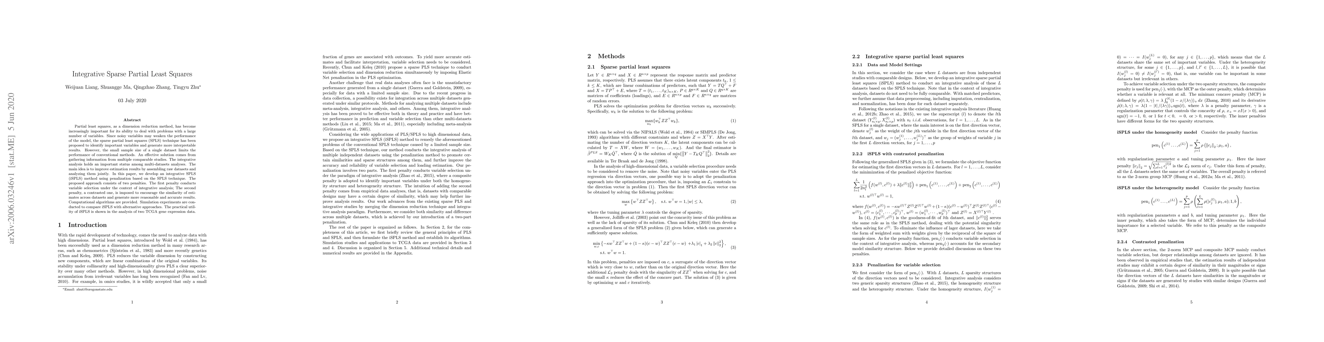 This paper introduces an integrative sparse partial least squares (iSPLS) method that combines penalization techniques to improve variable selection and estimate consistency across multiple datasets. The proposed approach enhances performance in small sample size scenarios and demonstrates its utility through simulations and analysis of TCGA gene expression data.