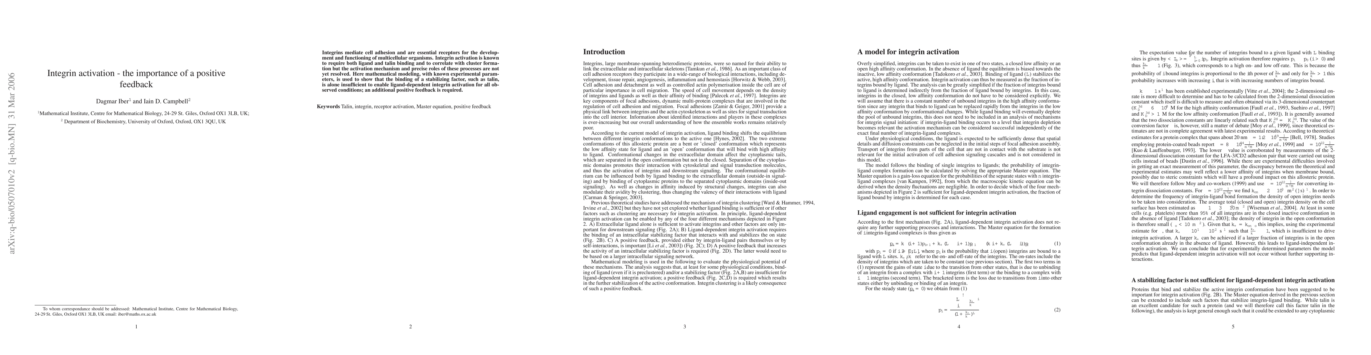 Research reveals that integrin activation requires more than just talin binding; an additional positive feedback loop is necessary for optimal activation. Mathematical modeling supports this finding using known experimental parameters.