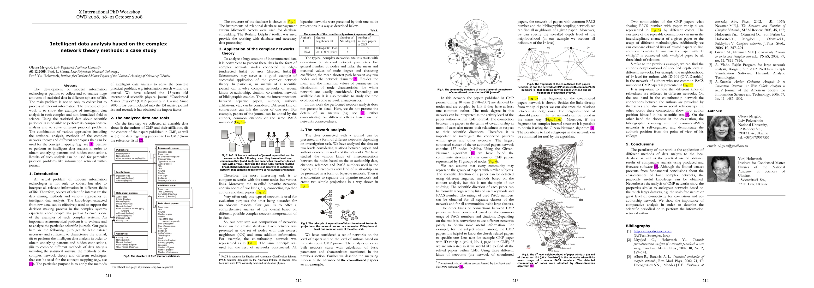 This paper demonstrates intelligent data analysis in the scientific field using complex network theory methods. By combining statistical analysis, complex network theory, and concept mapping techniques, it reveals underlying patterns and hidden connections in data from scientific periodicals, aiding practical applications like information retrieval.