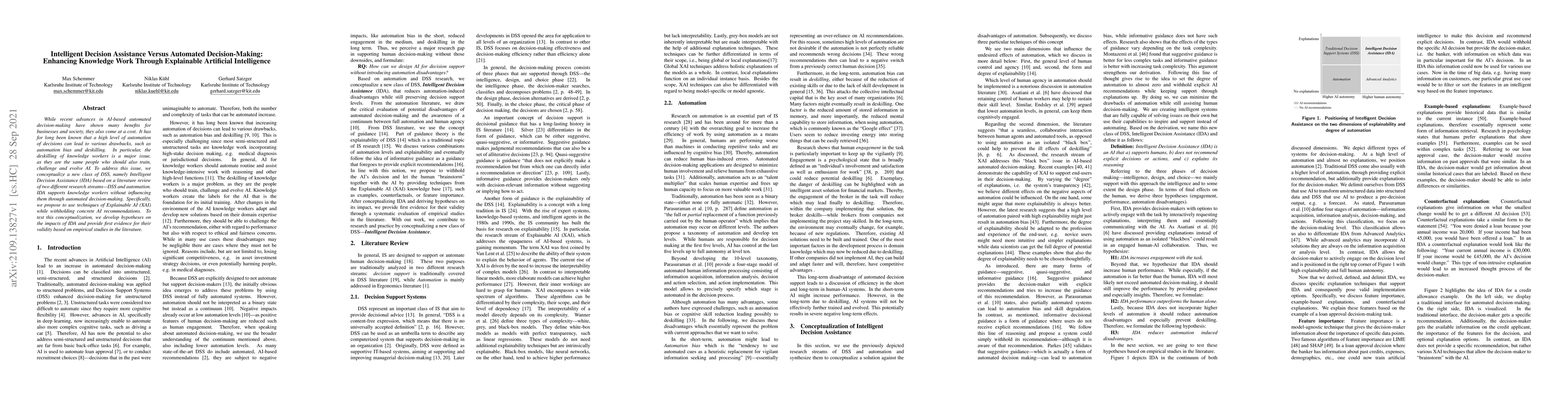 This paper explores Intelligent Decision Assistance (IDA) as an alternative to fully automated decision-making, aiming to enhance knowledge workers' roles without causing deskilling. It proposes IDA, which leverages Explainable AI to support decision-making without imposing automated recommendations, and presents initial empirical evidence supporting its conceptual framework.