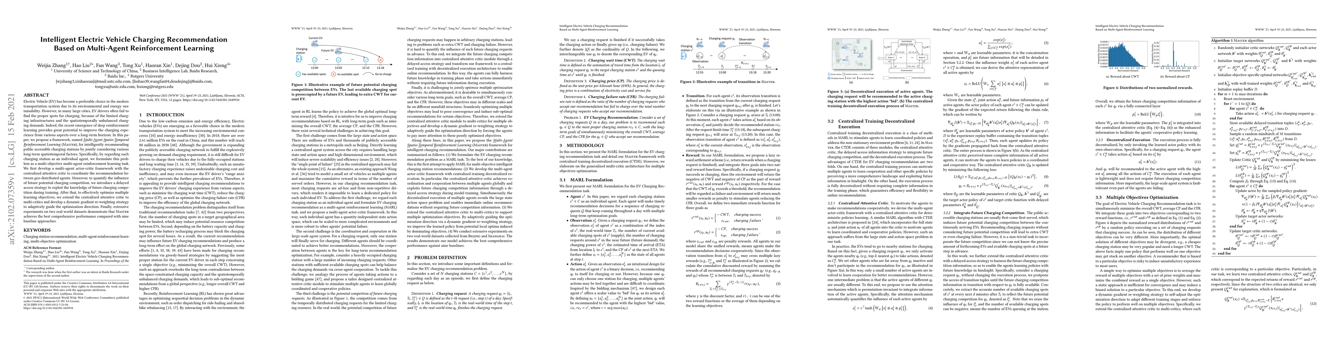 This paper proposes a Multi-Agent Spatio-Temporal Reinforcement Learning (Master) framework to recommend optimal charging stations for electric vehicles by considering long-term spatiotemporal factors. The framework uses a multi-agent actor-critic approach with a centralized attentive critic and a delayed access strategy to optimize charging recommendations.