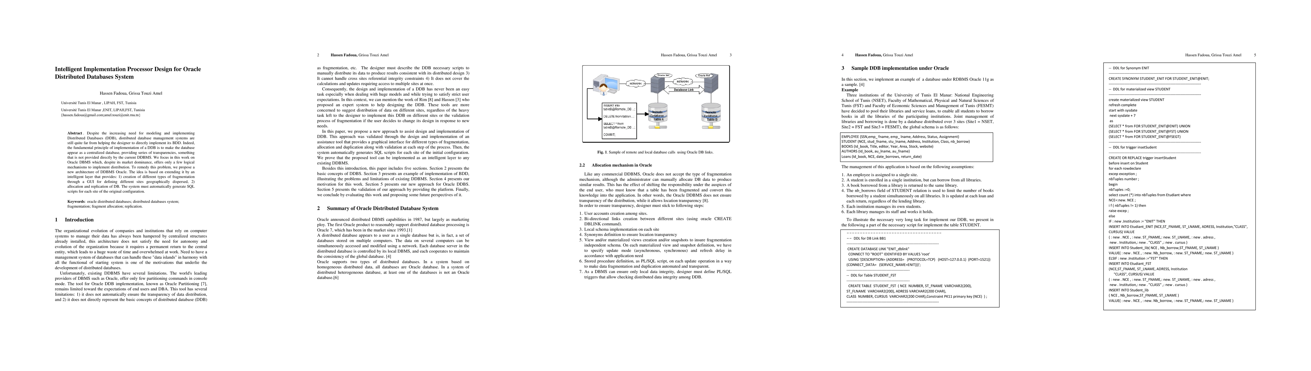 This research paper proposes an intelligent implementation processor design for Oracle Distributed Databases System to provide a GUI for creating fragmentation types and automating DB allocation and replication.