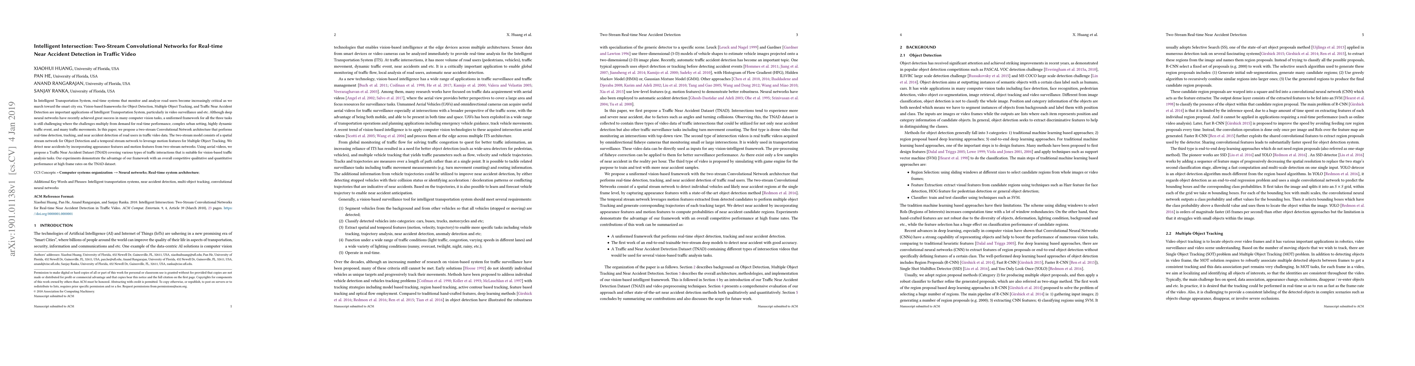 This paper proposes a two-stream Convolutional Network architecture for real-time detection and tracking of road users in traffic videos, incorporating both spatial and temporal streams for object detection and tracking. The model is tested on a new Traffic Near Accident Dataset (TNAD) and shows competitive performance in near accident detection.