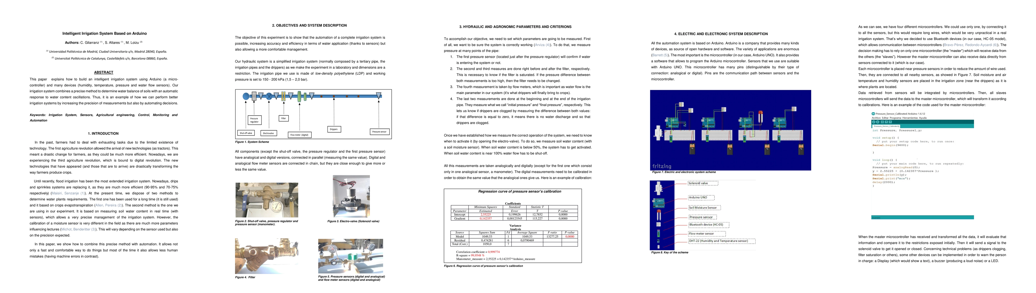This paper details the construction of an intelligent irrigation system using Arduino and various sensors to monitor soil moisture, temperature, and pressure, automating irrigation based on precise measurements for efficient water management. The system exemplifies the benefits of precision measurement and automation in improving irrigation practices.