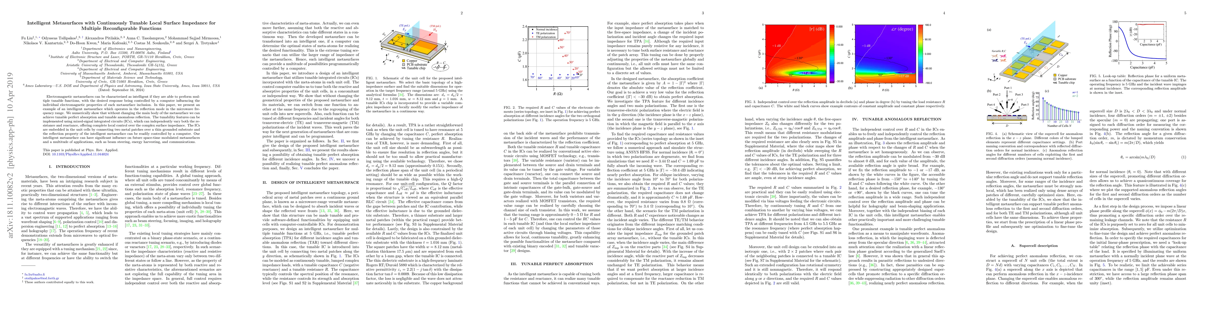 This paper presents an intelligent metasurface capable of tunable perfect absorption and anomalous reflection in the microwave range, controlled by mixed-signal ICs embedded in its unit cells. The metasurface's tunable functions enable applications like beam steering and energy harvesting.