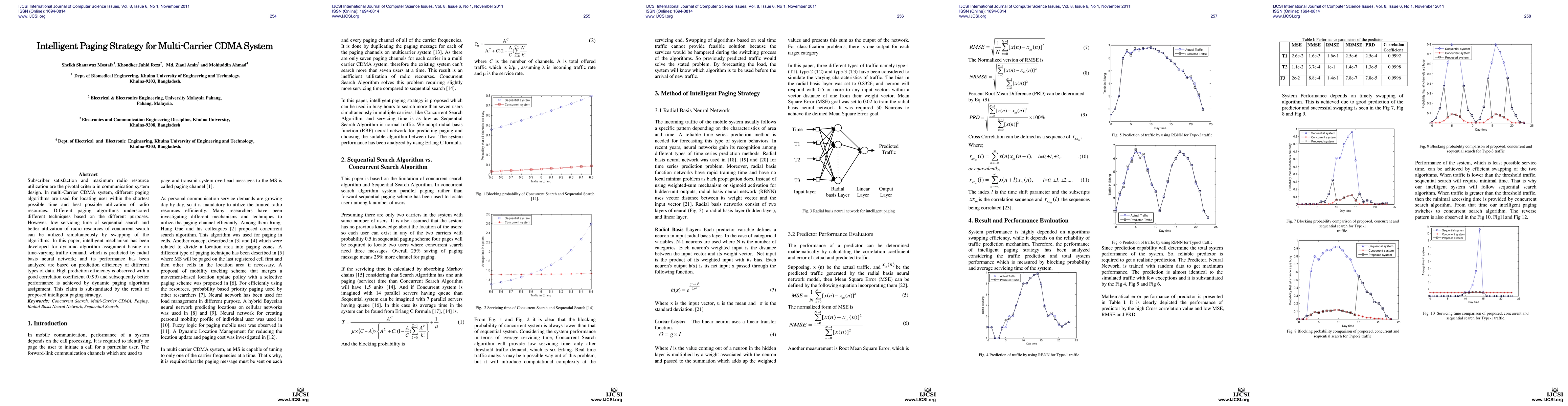 A new intelligent paging strategy is proposed for multi-carrier CDMA systems to optimize radio resource utilization and reduce search time. The strategy uses a radial basis neural network to predict traffic demand and dynamically assigns algorithms based on prediction efficiency.