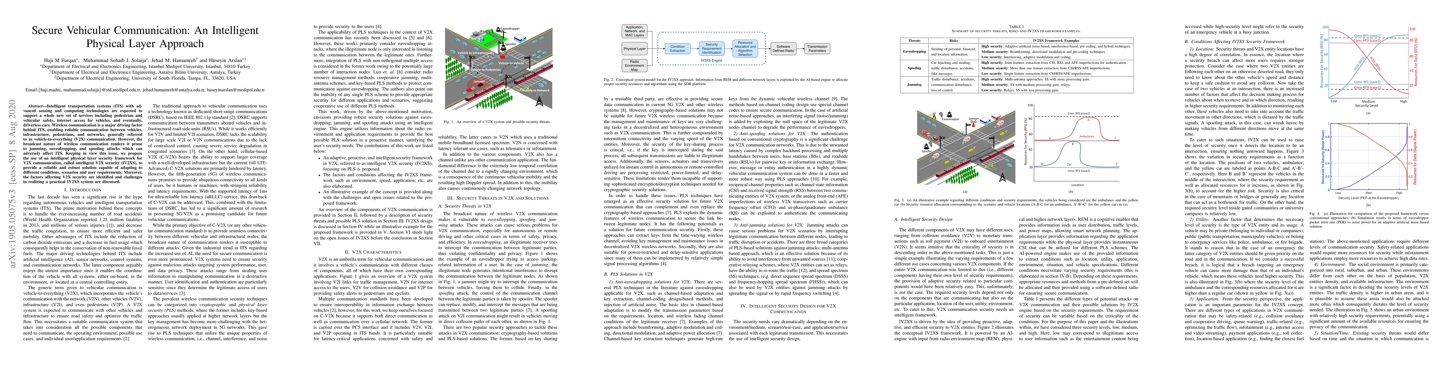 This paper proposes an intelligent security framework, termed intelligent V2X security (IV2XS), to enhance the security of vehicle-to-everything (V2X) communication in intelligent transportation systems. The framework aims to adapt to various conditions and scenarios to mitigate jamming, eavesdropping, and spoofing attacks, while also identifying challenges in implementing a robust IV2XS system.